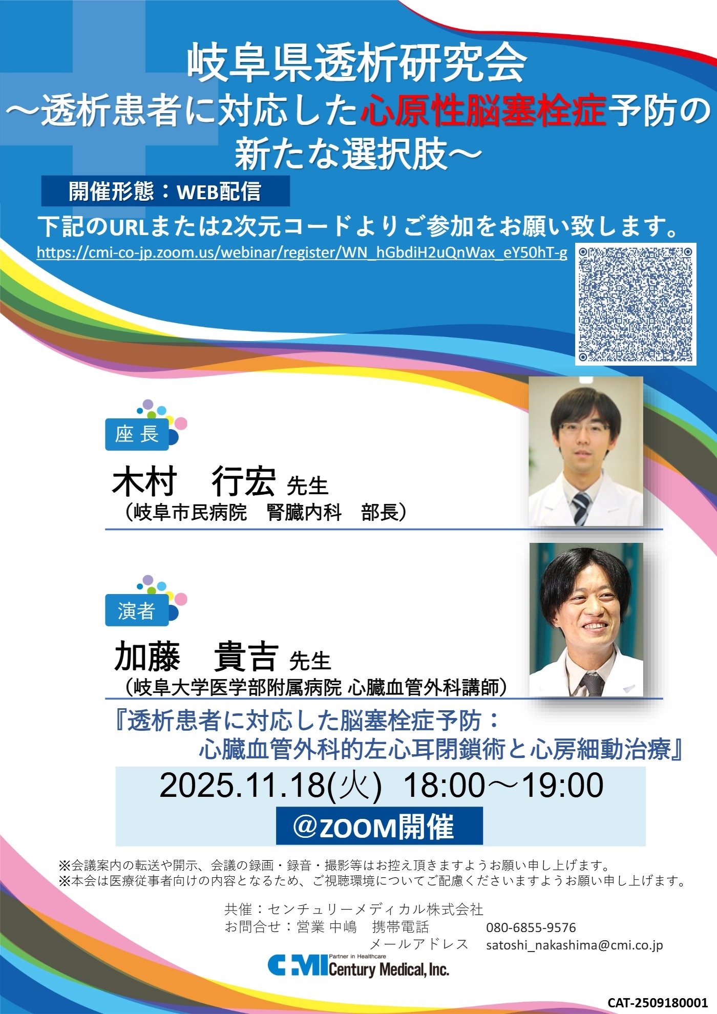 【2025/11/18】一般社団法人岐阜県透析研究会 WEBセミナー<透析患者に対応した 心原性脳塞栓症予防の新たな選択肢>
