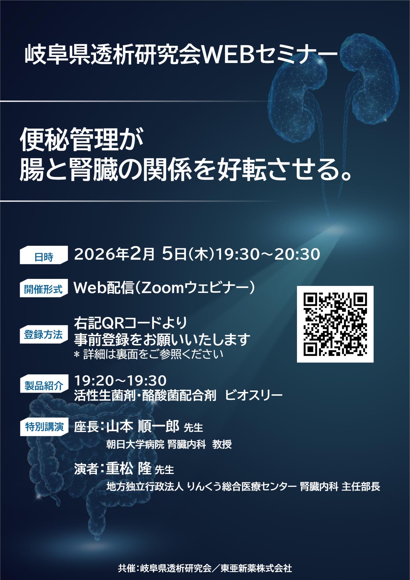 【2026/2/5】一般社団法人岐阜県透析研究会 WEBセミナー<便秘管理が 腸と腎臓の関係を好転させる>